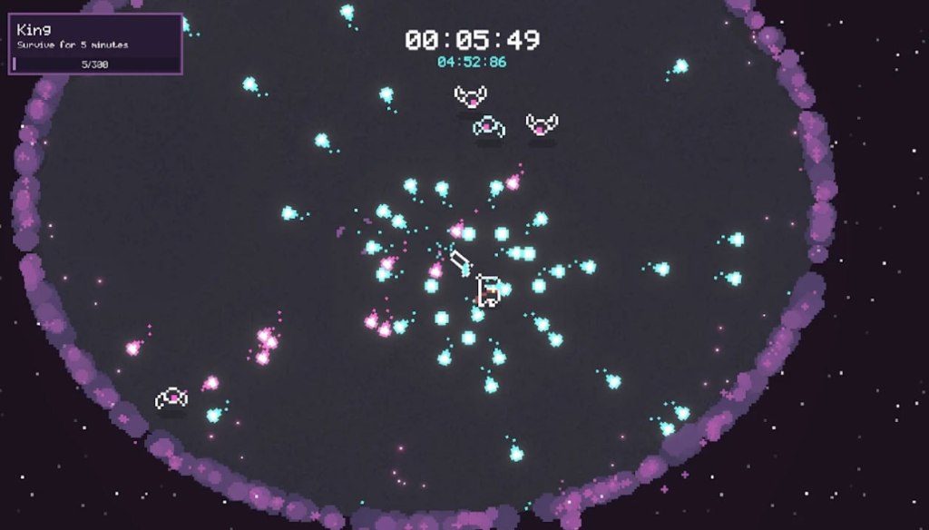 Void Prison is an Arcade-style 2-Stick Shooter released on PC in 2022 and ported to Nintendo Switch in 2023. In this game, players fend off enemies who cannot kill the player directly, but who are instead trying to push the player to the edge of the circular arena. Players aim to avoid this as long as possible, trying to hold out and get the best time they can manage.