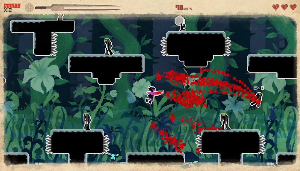 Between fights, players will be jumping, double-jumping and wall-jumping their way through the game’s levels, all while dodging the aforementioned hazards. The game does a good job of balancing the combat with the platforming, but ultimately I’d say that the platforming here plays a bigger factor than combat, at least most of the time.