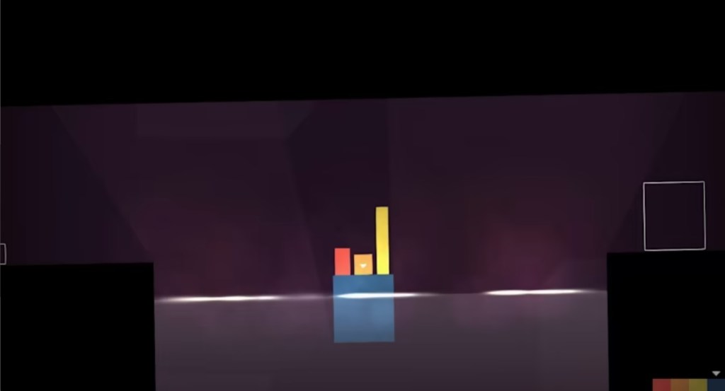 The presentation in Thomas Was Alone is exceedingly simple, yet somehow still very appealing. Characters and the levels they traverse are simple rectangles, with some nice shadow effects and a few other subtle nuances… but mostly, this is graphically an extremely simple, even minimalist, game. The characters themselves are distinguished only by their size, color, and abilities.