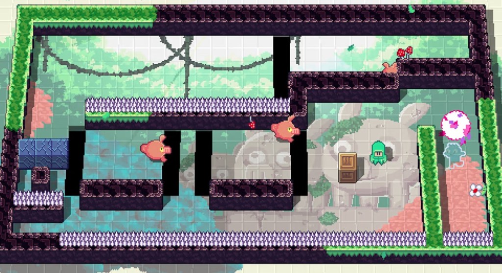 This game is an outstanding example of taking a simple concept and doing it extremely well. Neither Toodee nor Topdee are very complex characters to control – Toodee can only move around and jump, and Topdee can only move around, shove boxes, and pick up and drop boxes. However, due to some absolutely superb level design and puzzle design, players will have to put some good thought into how to proceed through each of the game’s puzzles. What’s more, this game’s excellent design is exemplified further in the game’s boss design, which makes fantastic use of the game’s unique mechanics.