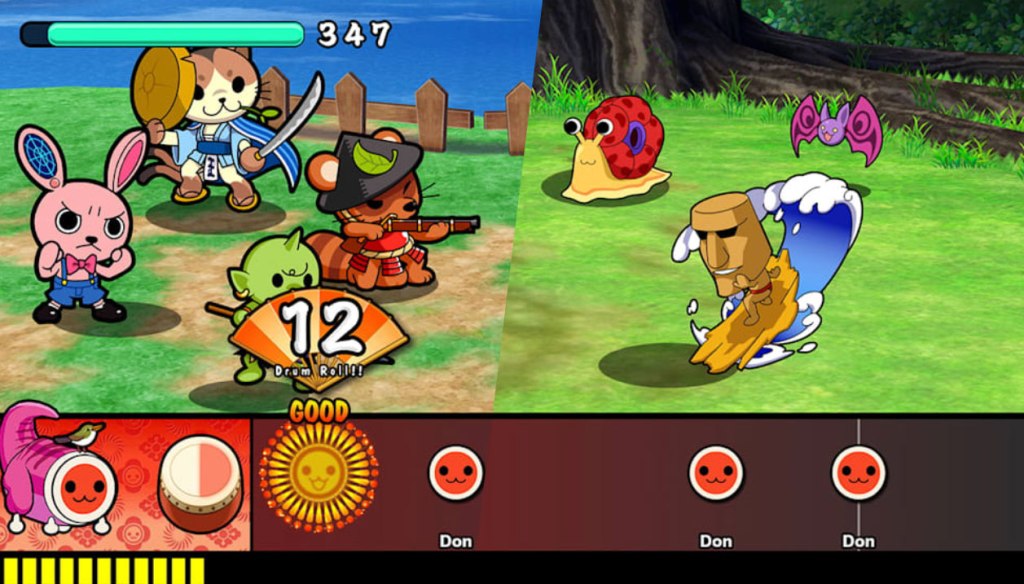 tl;dr – Taiko No Tatsujin: Rhythmic Adventure Pack is a family-friendly Compilation of Taiko No Tatsujin: Rhythmic Adventure Pack 1 and 2, and while this package’s combined 119 songs make it enticing, this value is tarnished by the way these games remove multiple great features from Drum ‘N’ Fun! and replace them with terrible RPG modes, and the way the content is segregated between the two games and forces players to jump through multiple annoying menus to get to them. Unless you’re a huge fan of this series, just get Drum ‘N’ Fun! instead.
