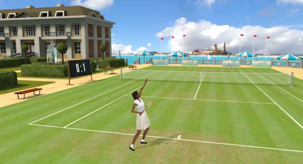 I’m not sure if the choice of time period here is to set the game apart or help excuse the dated-looking graphics, but whatever the reason, it’s a somewhat odd and slightly distracting choice. I’m not a history buff, but I think there’s some degree of anachronism at play when you have a tournament featuring black female players competing with white male players in New York with the skyscrapers still being built in the background and period-appropriate music playing. Perhaps this game is simply depicting a more idealized version of history, which would seem to be implied by the presence of “Gatsby Yacht” as a potential court location.