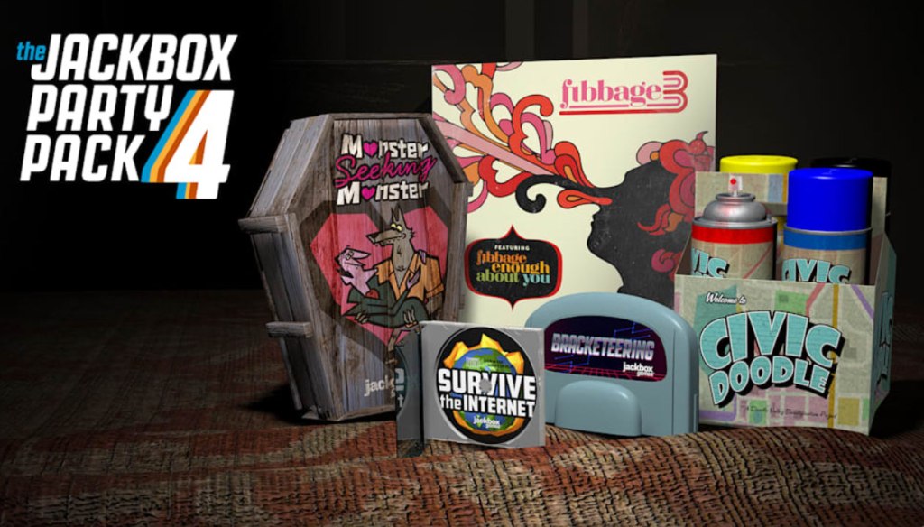 tl;dr – The Jackbox Party Pack 4 is a Collection of Party Games that includes five games that players play using their Smartphone instead of a controller. Of all the Jackbox collections so far, this is my least favorite, with three of the games here being absolute trash. If it wasn’t for the brilliant Fibbage 3 being in this collection, it would be a complete waste, and since you can get the earlier Fibbage games in Party Pack 1 and 2 (along with other good games), there’s little reason to get this one unless you’ve exhausted those and absolutely need more Fibbage.