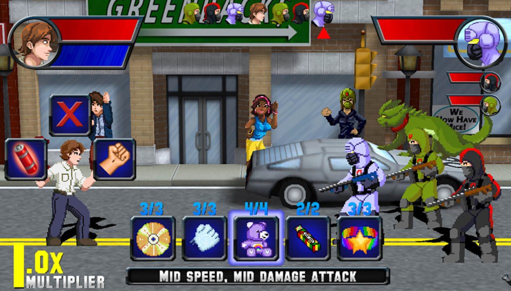 tl;dr – Saturday Morning RPG is a Turn-Based RPG with a barrage of jokes and references to 1980s pop culture, and gameplay seemingly inspired by the Paper Mario series, and an absolutely outstanding 80s-esque soundtrack. It’s wildly creative, but often that creativity goes too far, resulting in tedious game mechanics shoved down players’ throats and severe problems with the game’s difficulty level. On top of that, players who didn’t live through the 80s won’t understand much of what’s going on in this game. The result is a game that has a lot of good qualities and a lot of bad qualities, and is just as likely to frustrate players as it is to thrill them.