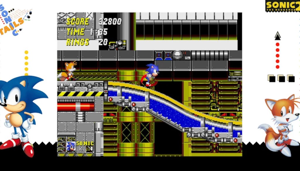 For those unfamiliar with Sonic 2, this installment added the helper character Tails, a split-screen 2-player “competitive” mode (preserved here just as it was in the original), and is overall generally considered an improvement over the first game thanks to improved stage design and some helpful added moves, like the “spin-dash” move that allows Sonic to gain speed from a standstill. In fact, up until the much more recent Sonic Mania (which I would argue tops Sonic 2 in every way), Sonic 2 was generally seen as the highlight of the entire series.