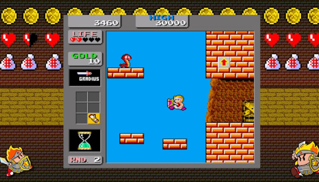 Wonder Boy: Monster Land is a port of the old Sega Arcade Action-Platformer with some RPG elements worked into it. Players jump through platformer levels attacking enemies with a sword, while occasionally ducking into shops to spend the cash they’ve earned on better equipment.