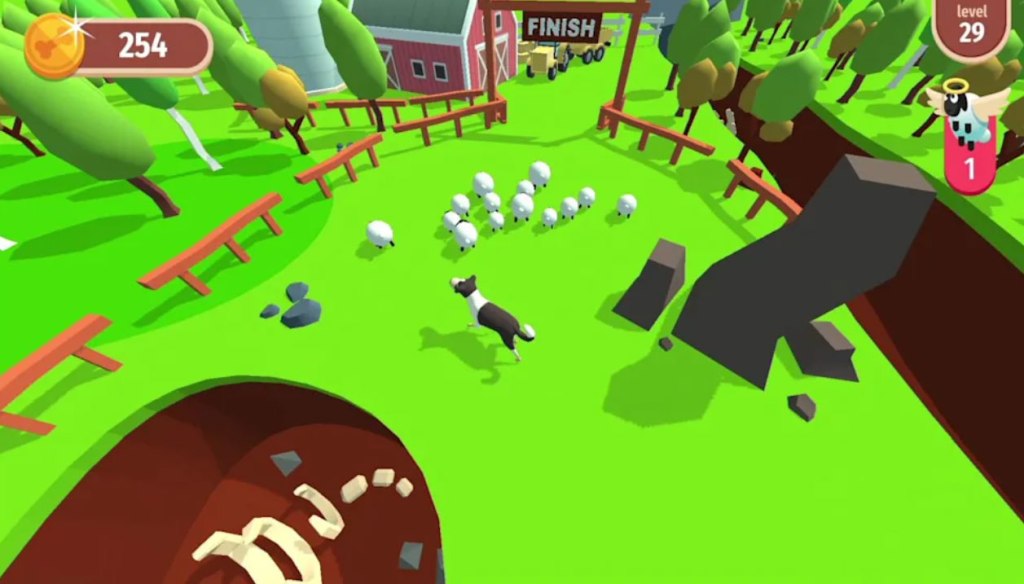 As for how the game is played, it works out to be a bit like pool or golf – players point their dog in a direction, choose the strength of his “stroke”, and then let him loose. The main difference here is that players aren’t trying to use a limited number of “strokes”, beat a time, or outmaneuver an opponent. Rather, players are trying to get their sheep to the ending while losing as few of them to hazards as possible.