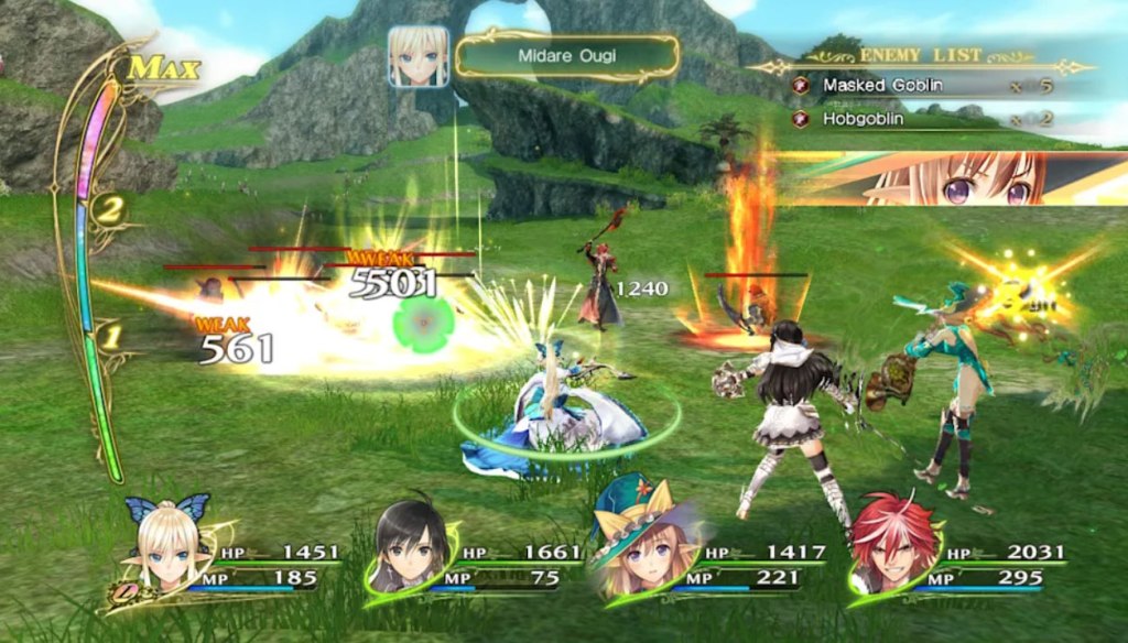 The rest of the game’s presentation is also very strong. One of the game’s big themes is music (characters’ weapons in the game double as musical instruments), and as one would expect for such a game, the music here is all top-notch, with songs that combine J-Pop as well as some lovely orchestral melodies. Along with this, we’ve gotten some really good voice acting and a story with some excellent localization work, though the story itself is mostly pretty typical fantasy fare – empires at war, a peace-loving boy who happens to be able to transform into a legendary dragon, and the various well-endowed girls that join him (yeah, this game has some light “dating” elements too).