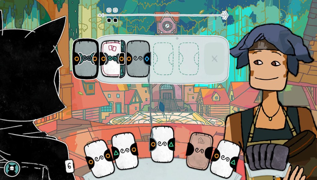As you place cards down, you’re trying to follow the cards your conversation partner plays while trying to ensure that they can do the same. You start out with only cards that feature circles and triangles, but over time you’ll get cards with other symbols as well, along with cards that have unique abilities, like a card that can copy the last card played, one that can be inserted anywhere in the current conversation, and one that will allow you to shuffle your hand.