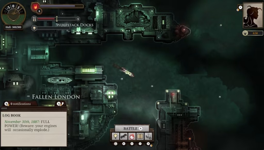 tl;dr – Sunless Sea is a refreshingly unique game that probably best fits into the Survival Adventure genre, putting players in the role of a sea captain piloting a ship through the murky, Lovecraftian underground sea of a condemned Victorian London. It’s a brilliantly-realized world with a strong presentation, fantastic writing, and some unique gameplay, but this game is also an acquired taste due to its odd controls, unhelpful tutorial, and slow movement. If you’re patient and have a taste for something different and difficult, this game may very well be worth a try, just be aware what you’re getting into.