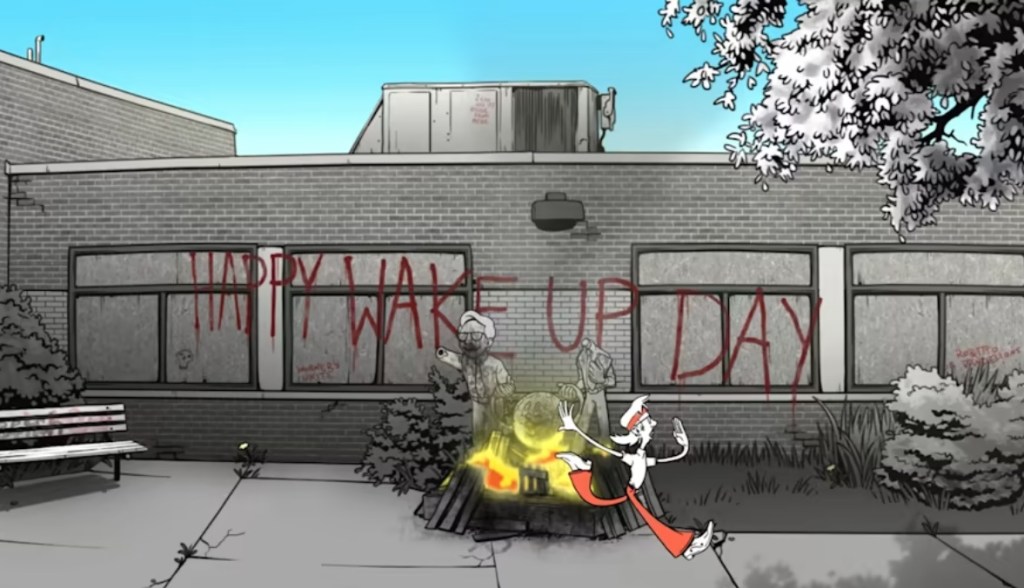 To be clear, when I say “spineless”, I kinda’ mean it in a literal sense as well, as Daryl moves around with limp, noodly appendages. This entire game has an art style that has characters depicted as caricatures. The game has a limited color palette, and at times the mundane reality of the school gives way to bizarre otherworldly settings and unhuman characters, almost as if to suggest that Daryl (and in turn, the player) is choosing to see reality as far more fantastical than it is. Again, this isn’t going to appeal to everyone, but it definitely sets the game apart.