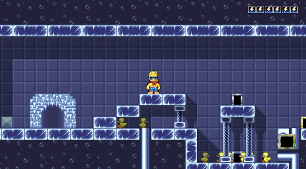 As for complaints, I have two. Firstly, the actual platforming here isn’t that great – the titular SuperDuck! Jumps pretty high, and players don’t really have much control over this, something that becomes frustrating when players need to dodge hazards. And secondly, while the game does have a “fast forward” button, it doesn’t speed things up enough, meaning you’ll still be waiting doing nothing as the remainder of your ducklings reach the exit.