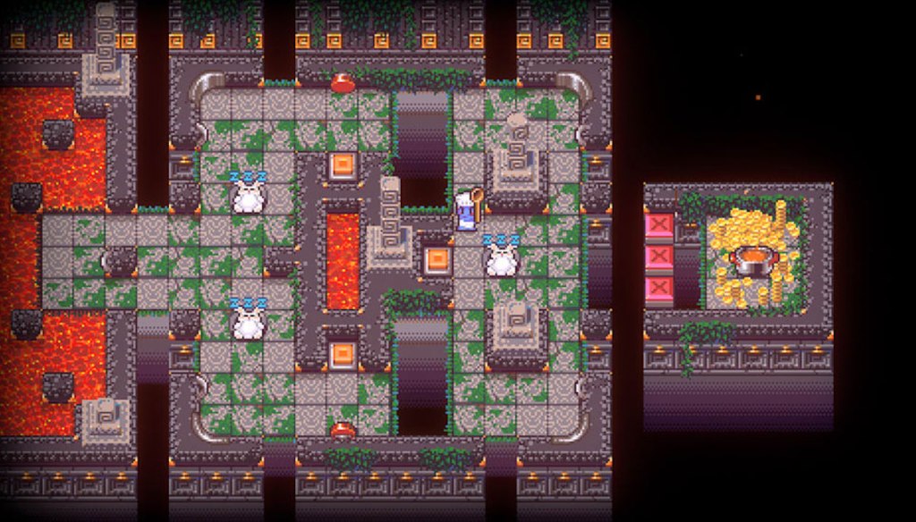 At one point, for example, players get a grappling hook hand, which you discover gets rebounded by springs and redirected by curves the same as flying bunnies do. And players using the metal spoon can launch themselves using a spring just as easily as they can launch bunnies. The mechanics here are really clever, and make for some interesting puzzles on occasion. Then, there’s the boss fights, which are also pretty creative, not only making use of the player’s accumulated skills, but putting them to the test in interesting ways.