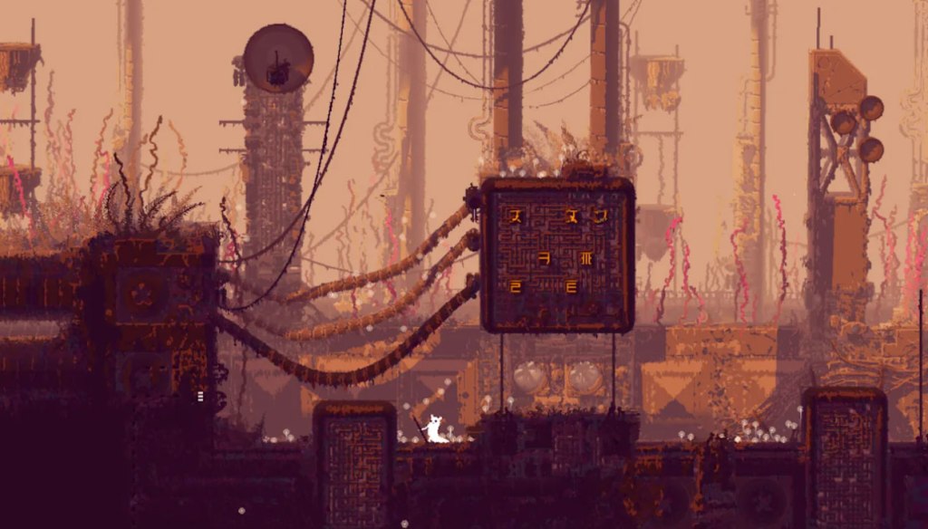 Rain World is a Platformer released on PC and PlayStation 4 in 2017 and ported to Nintendo Switch in 2018. This game has you playing as a cute, fuzzy, rodent-like animal in a post-apocalyptic world where seemingly everything is trying to kill you.