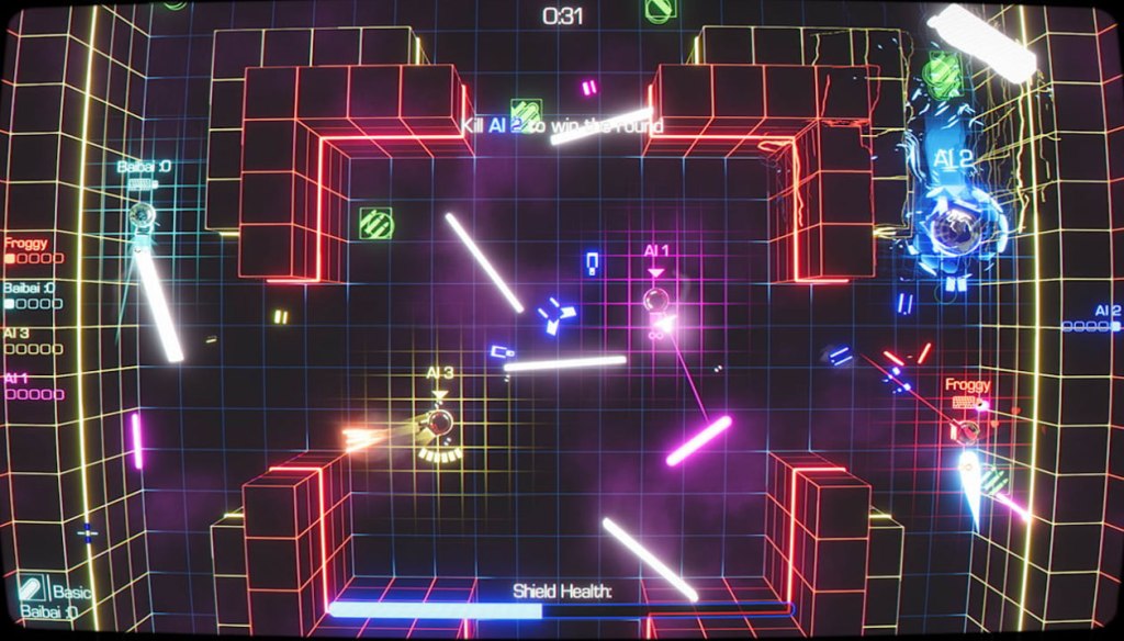 Retrograde Arena is a multiplayer competitive arena-based Two-Stick Shooter first released on PC in 2020 and then ported to Nintendo Switch in 2021. This game does a few things that are pretty unique for the genre. First, it’s Free-to-Play, with the only monetization coming in the form of expansion content that adds game modes, maps, and skins to the game. And secondly, players aren’t eliminated by being shot in this game, but instead must use their firepower to push one another into red walls that kill players who touch them.