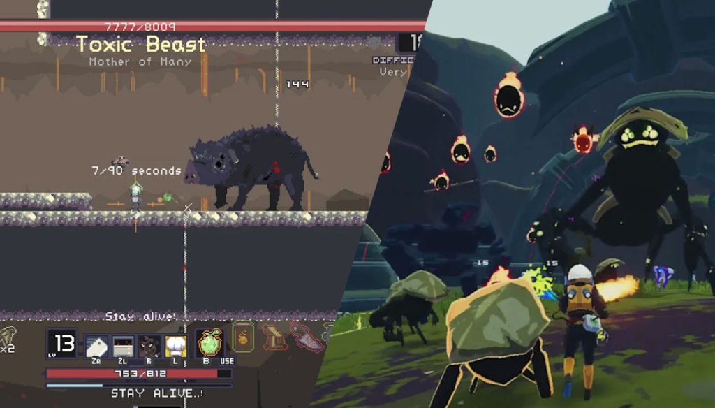 tl;dr – Risk of Rain 2 + Risk of Rain 1 is a Compilation available only in physical form containing the two named games, both included on the cartridge. The first game is an Action-Platformer with Roguelike elements, while the second game brings the formula of the first game into 3D as a Third-Person Shooter. These games aren’t without their issues (particularly bullet sponge enemies), but they’re solid action games, and this Compilation is such a good bargain that I would argue that unless you insist on getting your games in digital form, you should absolutely get this package instead of buying either game separately.