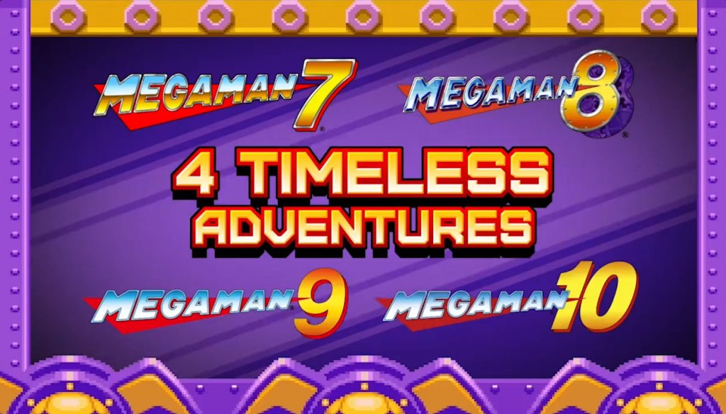Mega Man Legacy Collection is a collection of four Mega Man games late in the main series, Mega Man 7, 8, 9, and 10, with 7 and 8 originally released on the Super Nintendo Entertainment System and Sony PlayStation, respectively, and 9 and 10 more recent releases designed to be throwback titles reminiscent of the old 8-bit games. These games are all Action-Platformers with the same basic premise – you are a peacekeeping robot out to take on eight various enemy robots (selecting from four at a time in Mega Man 7 and 8), each with their own elemental theme and thematically-appropriate stage to traverse before you can reach them. Upon defeating one of them, you’ll get a version of their weapon that you can swap to, with a large part of the strategy of these games being learning which order to play the game’s stages, since each robot is weak to one of the others’ weapons. Upon defeating them, you’ll challenge a final gauntlet of difficult stages and bosses before taking on the mastermind behind the threat (usually the nefarious Dr. Wily).