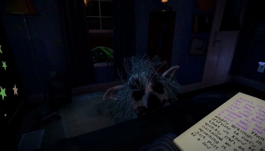 At the very least, the story your character reads is fittingly creepy, and the gameplay built around darting your eyes back and forth between your book and the room around you is a solid premise for a Horror game. Unfortunately, the mechanics aren’t very well-explained. I found myself frustrated that there wasn’t any reliable sound or lighting indication that you were suddenly in danger, and had to look online to see that apparently there is a random chance that one of the critters will spawn after the completion of every sentence in the story.