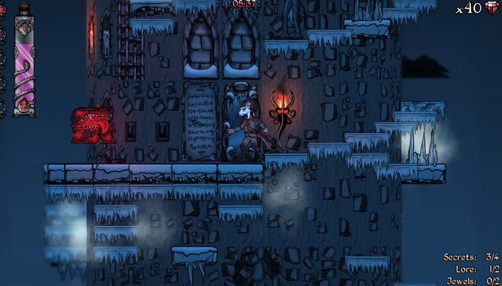 This game uses a hand-drawn art style which it then manipulates into a “2.5D” visual presentation by having the character move around rotating towers. It’s an interesting and somewhat unique look, though I can’t say it’s terribly appealing. This is backed by a droning, forgettable soundtrack.