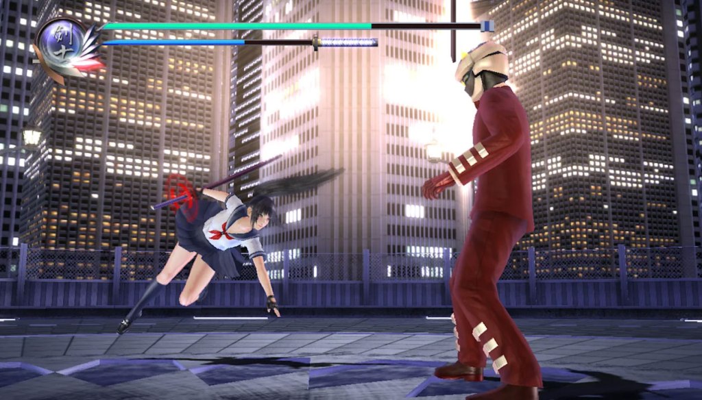 Mitsurugi Kamui Hikae is a Spectacle Fighter like Devil May Cry and God of War, a single-player experience where you are fighting multiple enemies using complex fighting mechanics, and in this case, it is a game where you are fighting various demons as a young woman in a Japanese school girl outfit.