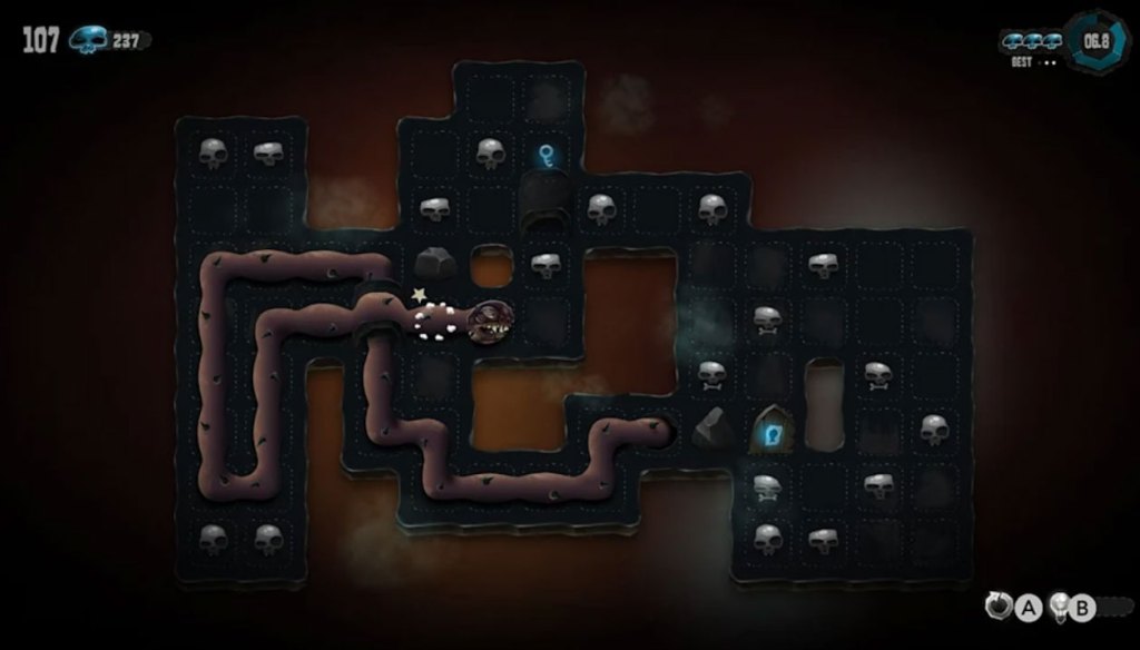 tl;dr – NecroWorm is an Arcade-style Puzzle game that has you trying to collect all the pickups in each level without trapping yourself with your own body. It’s a fairly standard, predictable Puzzle game with an intentionally off-putting presentation. If that sounds appealing to you, you’ll probably be satisfied with this game.