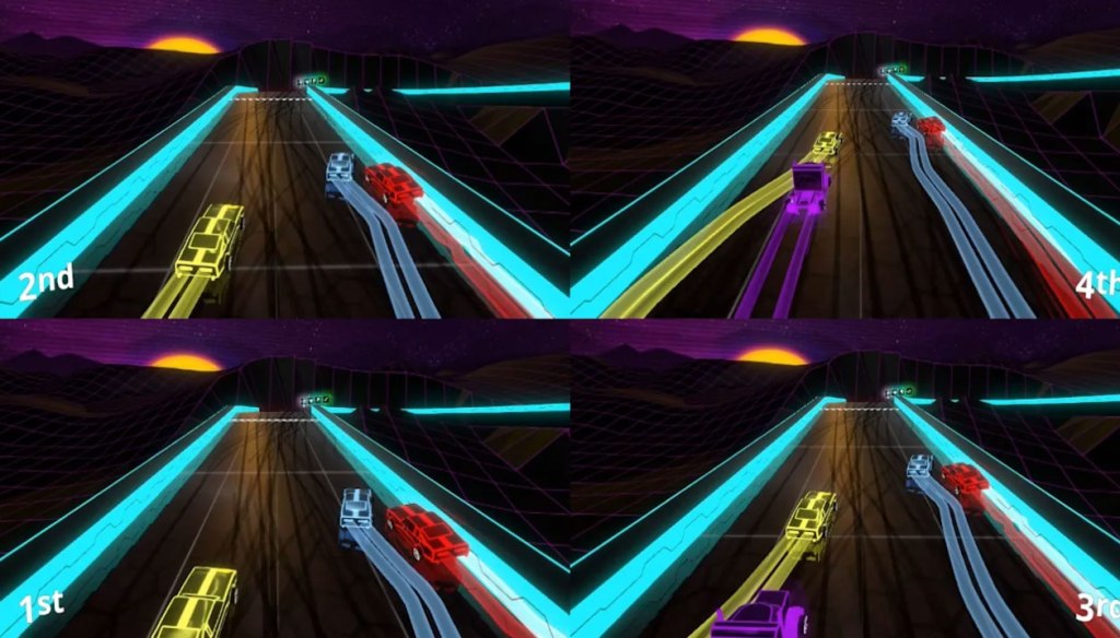 Okay, first let’s get the good out of the way: This game has a wonderful presentation, with neon-colored wireframe tracks and vehicles on a black background that makes it one of the most distinctive-looking racing games on the Switch. What’s more, the game actually features procedurally-generated race tracks, meaning the potential for variety here is theoretically endless. Also, there are a ton of options for different styles of play, and there are a wealth of features for those who want to customize the action.