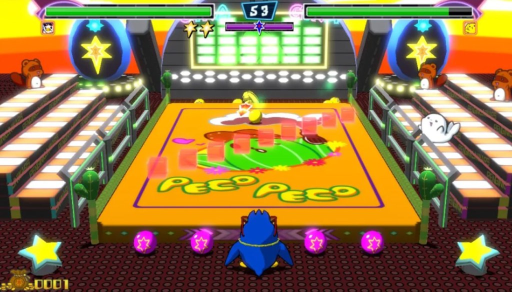 Penguin Wars is a game with Arcade-style gameplay, a remake of an old arcade game from 1985, that works as a sort of glorified version of dodgeball. The gameplay has characters opposite each other on a flat table-level field, throwing across sliding balls in an attempt to hit each other. Get enough strikes and you win.