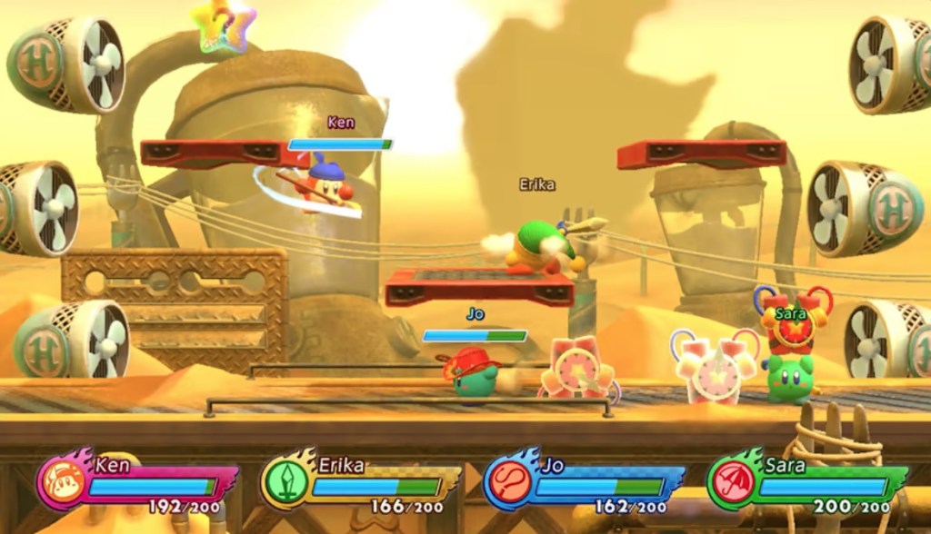 Visually, Kirby Fighters 2 looks very nice and extremely polished, albeit not especially impressive. While the gameplay is in 2D, characters and stages are rendered in 3D with some nice animation and even some nice visual effects like some pretty-looking water and nice lighting. This is all backed a remixed versions of classic Kirby series tunes that works well enough for this game but doesn’t really distinguish itself from other great versions of these same themes throughout the series as well as in the Smash Bros. games Kirby Fighters 2 bears a strong resemblance to.