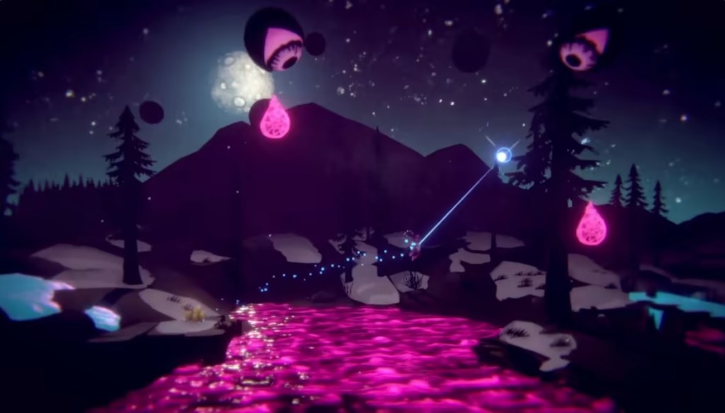 Little Bug is a Platformer released on PC in 2018 and ported to Xbox One and Nintendo Switch in 2021. In this game, players take the role of Nyah, a young girl full of imagination who struggles with family issues, in part because her imagination keeps running away with her, like whisking her off in a strange wilderness where pink neon hands try to grab her and a ball of white light lifts her into the air like a bungee cord.