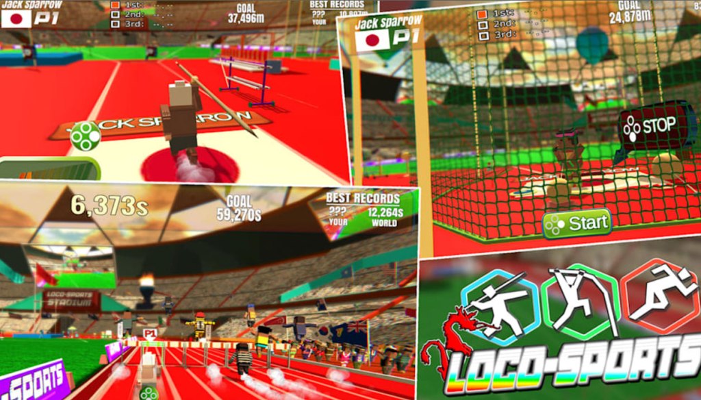 LocO-Sports, released on the Nintendo Switch in 2020, is a Compilation of 10 minigames based on Summer Olympics-style Sports. The included sports are the Long Jump, High Jump, Hammer Throw, Pole Vault, Javelin, Shot Put, 100 Meter Dash, 800 Meter Dash, 400 Meter Hurdles, and Discus Throw.