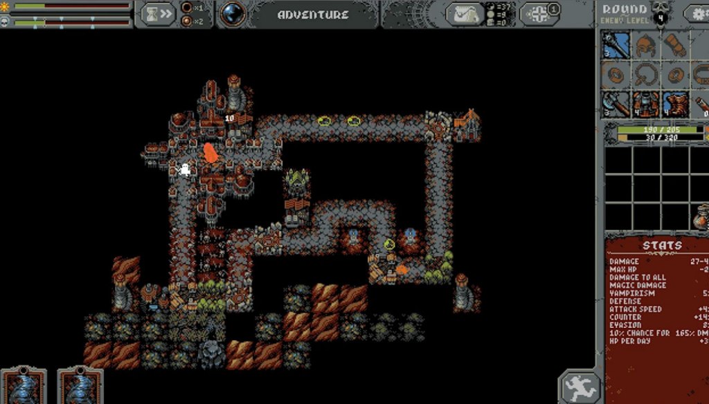 Finally, when it comes to the presentation, Loop Hero makes the interesting choice to go decidedly old-school, a contrast to the extremely unique gameplay. The visuals make use of pixel art 2D visuals on mostly black backgrounds, which isn’t especially visually compelling, but does a decent enough job of placing the focus on the gameplay. These visuals are backed by a synthesized soundtrack that isn’t memorable, but works well enough for the game.