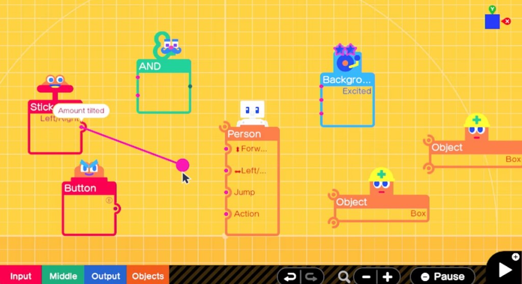 Finally, this game does allow players to make good use of the Nintendo Switch’s unique features, and the game creation interface seems to be crafted with the touchscreen in mind. However, it’s not just the creation that works well with the Nintendo Switch’s unique control inputs – games themselves can be designed to use the touchscreen, gyroscopic motion control, to interact with the rumble in different ways, and even make use of the IR sensor… if that was something you really intended to do. It’s not much of a surprise, since the Nintendo LABO games that Game Builder Garage descends from were essentially demonstrations of these features, and so their inclusion here feels somewhat grandfathered in. Oddly, this game does not allow you to incorporate inputs from multiple controllers, unless you split up a pair of Joy-Cons between two people. So… that’s frustrating.