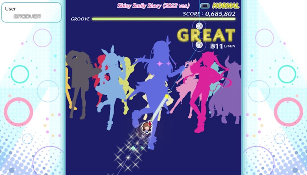 Still, despite how user-friendly the basic gameplay is, and the nice stuff the game does with progression, I still have a problem with the way Groove Coaster Wai Wai Party is constantly pushing you out of “getting into the groove” rather than bringing you into it. It’s not just the presentation that keeps trying to distract you from the music, it’s not just the sounds the game makes as you’re hitting notes that clash with the music, it’s also little things like the game having “secret notes” that players are expected to hunt for without any indication where those notes might be. Add to that the lack of variety in the music, and Groove Coaster is a game that, while it has its charms, and is still a decent entry in the genre, fails to reach the top tier of music-rhythm games on the Nintendo Switch.