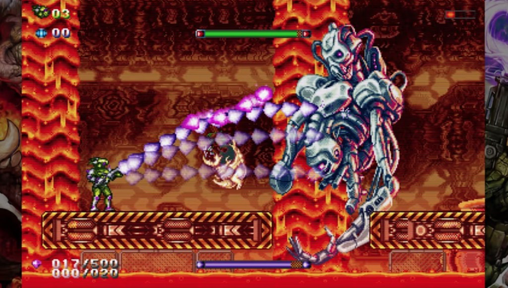 Gunlord is an Action-Platformer with some Shmup levels originally designed for the NEOGEO console, but put on hold during development, then ultimately finished and released on the Dreamcast in 2012. An upgraded version of the game dubbed Gunlord X was released on PlayStation 4 and Nintendo Switch in 2019. This game’s designers said they were inspired by the Turrican, Contra, and Metroid franchises, and this game bears some elements of all of those games.