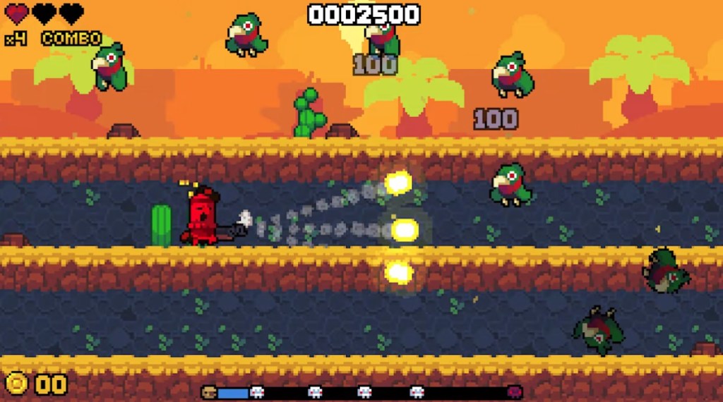 tl;dr – High Noon Revolver is an Arcade-style Action-Platformer with Auto-Runner and Roguelike elements and a Wild West theme. The characters and their firing rate are both sluggish, and so too is the frequency with which you unlock new characters. However, for a mere $3, this is worth a look if the premise sounds interesting to you.