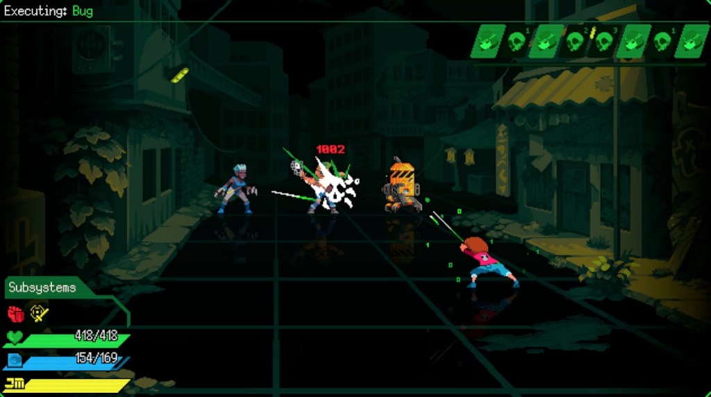 The gameplay here is pretty standard for a Turn-Based RPG, but everything is filtered through a lens of tech jargon. So, for example, you don’t attack enemies, you “hack” them. You don’t use items, you use “patches”. You don’t wear equipment, you install hardware. And you don’t use limit breaks, you execute a “Jack Move”. It can take some getting used to rethinking all of the usual jargon to associate those gameplay elements with these different terms, but I appreciate this game trying to stick to its theme.