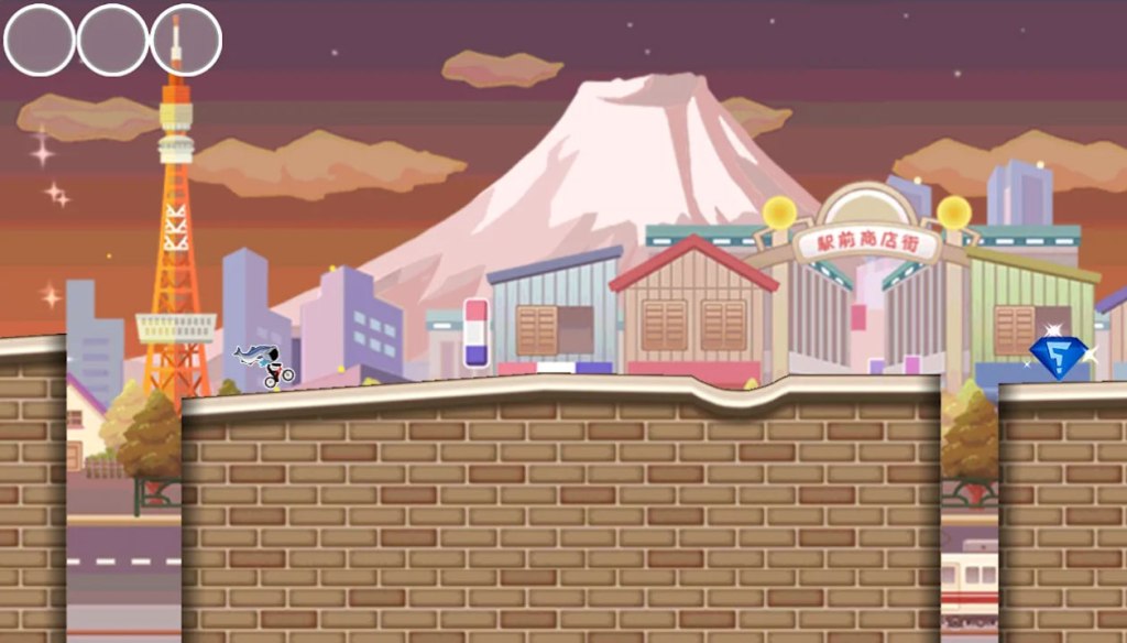 tl;dr – Crazy BMX World is a Compilation of the family-friendly Auto-Runner games Bike Rider DX, Bike Rider Dx2: Galaxy, and the previously Japan-only Bike Rider DX3: Time Rider. This Compilation frustratingly forces players to unlock all of its games, doesn’t support Pro Controllers, and lacks the earlier releases’ DLC. However, at $3, this is still an outstanding bargain of a package that contains simple but compelling Auto-Runner gameplay, and anyone who enjoys this sort of game or wants a fun but simple time-waster on the cheap would do well to pick this game up.