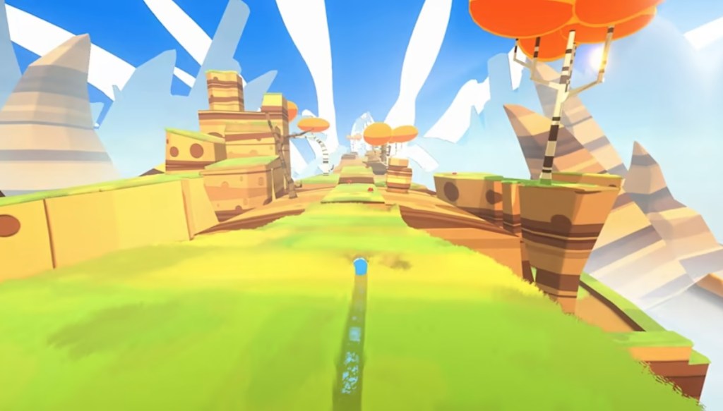 Crumble has visuals that are appealing, but simple, using some fairly simple polygonal visuals that have some nice touches like good-looking grass and destructible environments with nice physics, but mostly don’t do anything particularly noteworthy. The one exception here is that when this game really gets going, it gives players an incredible sense of speed, and in fact this may be possibly the fastest Platformer I’ve ever played – Sonic, eat your heart out.