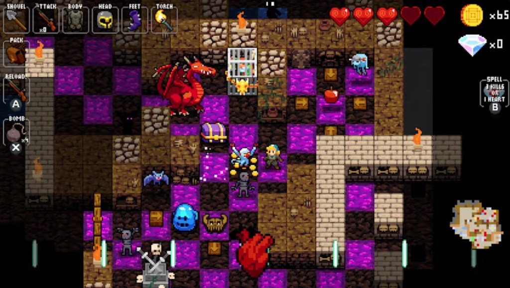 Players plunge through the dungeons collecting loot, fighting monsters, and very likely dying a lot (but retaining some of what they unlocked), very much like a Roguelike. However, all player movement, enemy movement, and attacks in the game all flow to the time of a beat, which not only gives you fixed timing to strike at enemies, but also propels the gameplay forward and ensures that fighting enemies is every bit as much about knowing where to move as it is knowing when to strike.