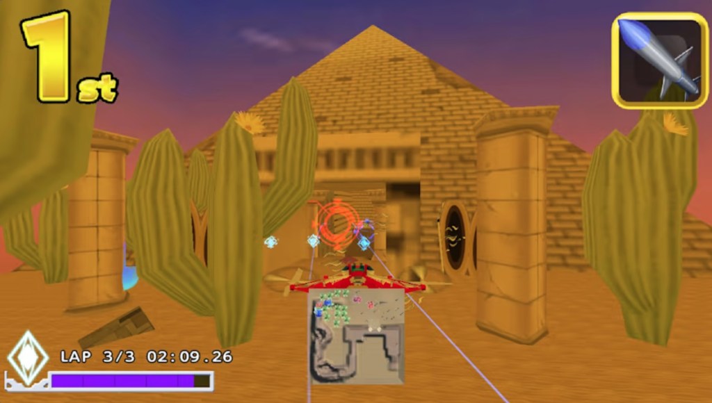 What’s more, for all of how good some of the tracks are, some are a horrible mess, with those circular gates strewn all over the place with no rhyme or reason. And on top of that, this game features some of the worst rubber-banding I have ever seen in a racing game, with the other racers noticeably speeding up after you pass them, and then slowing to a crawl after they get a short distance ahead of you. Oh, and just to cap off the list of complaints, this is a racing game with no multiplayer.