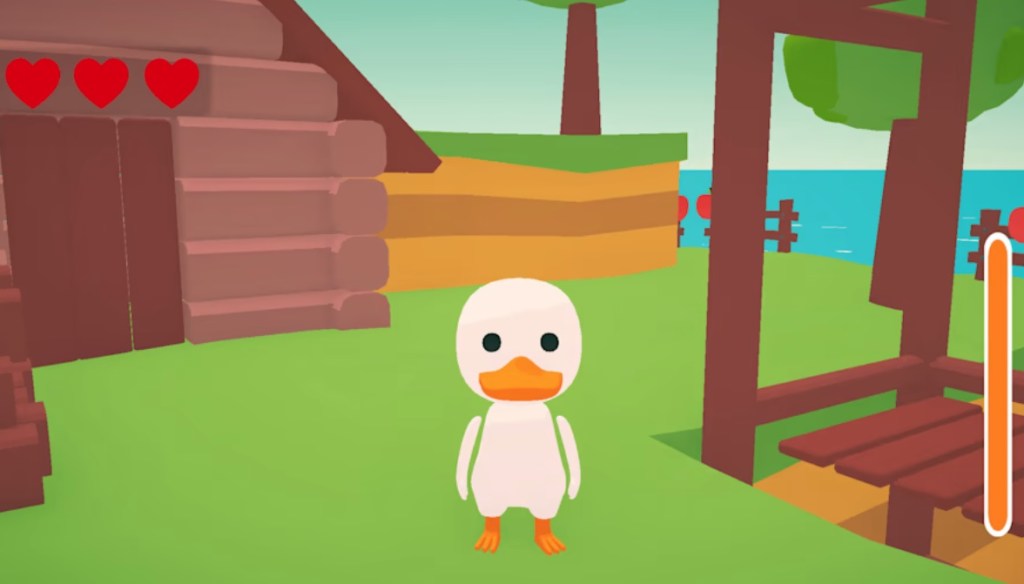 The presentation here is very simple and in many ways incomplete. The game uses simple 3D visuals that are largely untextured, and while they are fairly colorful, their simplicity makes them lack any sort of personality. This is backed by… no soundtrack at all. Yeah, this game is eerily quiet, with players only hearing the patter of their feet, a quack when they opt to “attack”, and a cartoony noise whenever they jump. But mostly, this game is strangely silent.