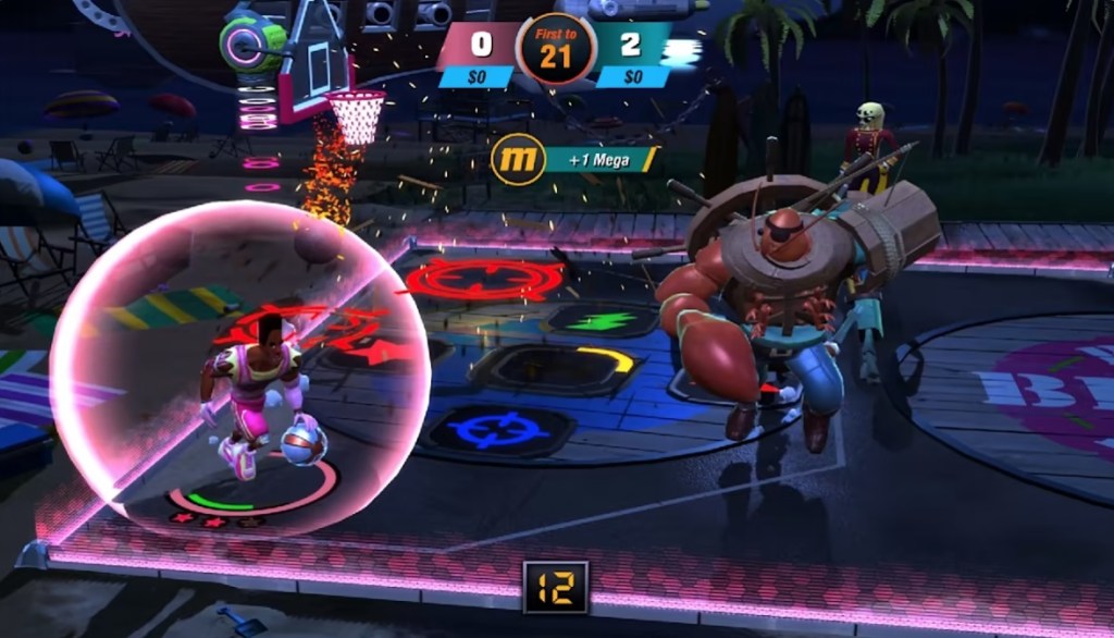 It’s a lot to get used to, and frankly I think this game could be better-served by having a speed setting, especially so newer players can get a feel for everything going on at a given time. This is also important because there’s a fair amount of nuance to the gameplay here. Different types of shots, shot bonuses, different kinds of steals, different kinds of passes, character-specific special abilities… it’s enough to make your head spin, especially for a game that on the outside looks like a silly, cartoony version of the sport.