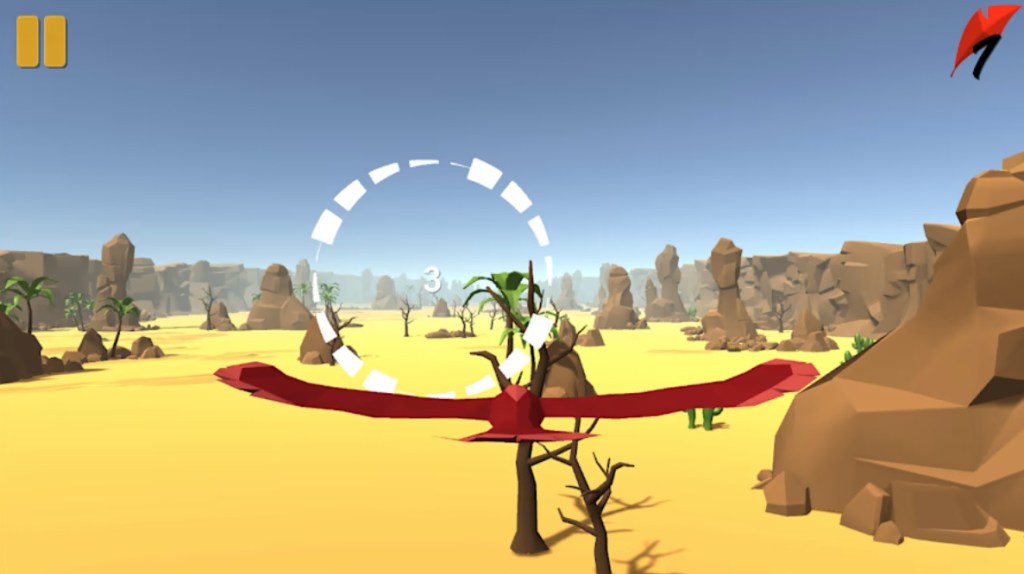 Unfortunately, this isn’t another game. Instead, what you have here is a simple game that has you directing your bird to rings as they appear, and the game raises the challenge not by making the landscape more difficult and elaborate, but by making the bird continue to fly faster. This wouldn’t necessarily be a bad thing, except within a minute of playing the game, the bird will already be traveling at speeds so fast that it will be unable to turn to make it to rings in time, with players quickly losing the three chances they’re given, failing, and being forced to restart.