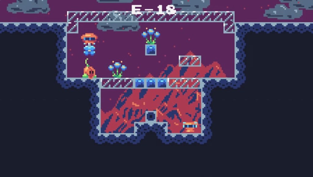 The gameplay here is, as with the presentation, fairly simple. However, while this game starts with simple moving box puzzles, it gradually reveals some interesting mechanics the lead to some clever puzzle designs. Because of the small size of the protagonist, the “boxes” here include droplets of water, which can be clambered on or soaked into dirt to assist in growing plants, which can act as bridges or lift up other objects. In addition, players will encounter flowers that allow them to temporarily fly around freely. Despite these mechanics being relatively simple, they’re still used in creative ways that keep things entertaining.
