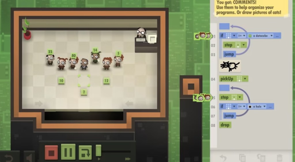 When it comes to the gameplay, much as with Human Resource Machine, 7 Billion Humans tasks players with creating a script for employees to follow, in what amounts to a simple version of a programming language, and like Human Resource Machine, this game will likely act as a great introduction to programming languages by making players get acquainted with commands like GOTO (called “Jump” here) and If THEN ELSE, all presented here in a very user-friendly manner that even those who know nothing about programming should understand.