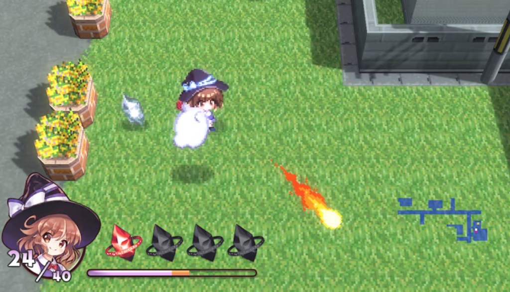 The presentation in this game is simple, combining some basic pixel art graphics with low-detail polygonal environments. It’s not impressive at all, but still manages to be visually appealing, although I will say that the environments get repetitive really quickly. The same goes for the game’s music – it’s okay, but highly repetitive to the point of getting annoying quickly. The story here is also a mix of good and bad – it’s a cute idea of a normal schoolgirl basically tricked into becoming a witch and hounded by monsters, but as cute as the story may be, it’s hampered by a pretty poor localization.