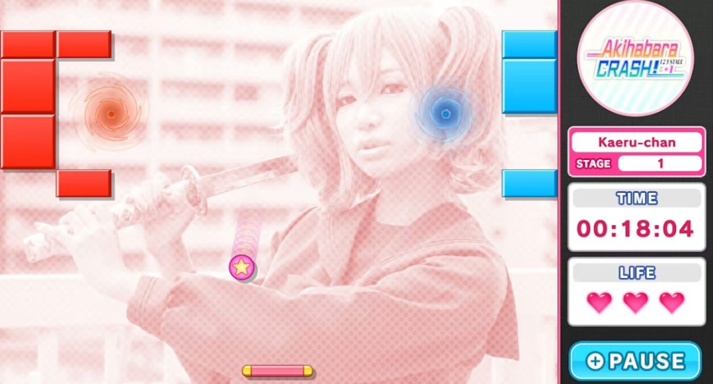 Akihabara Crash is an Arcade-style game where you’re using a paddle to bounce balls off of bricks you’re trying to break, much like Breakout, Alleyway, and Arkanoid. This is actually a game in a long-running series that is only just now making it to the United States… and man, it is obvious why this series never came to the US before.