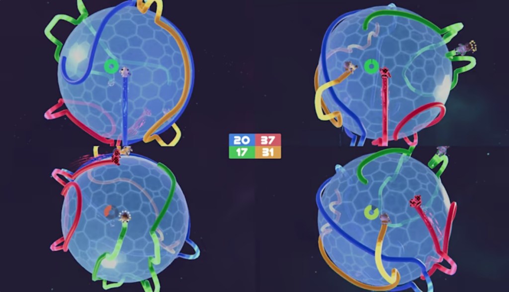 Astro Bears is a family-friendly Party game that acts as a replacement and update for the older game Astro Bears Party, so much that after the release of Astro Bears, Astro Bears Party was outright removed from the Nintendo Switch eShop. This version adds an extra game mode and extra playable characters, but the core premise is the same – this is a modern equivalent to Snake and Tron Bikes played on a spherical 3D planet, where players are trying to avoid each others’ trails while entrapping enemies in their own trail.