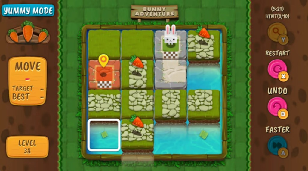 In the end, Bunny Adventure is a decent but unspectacular Puzzle Game. It has a nice aesthetic, and the Yummy Mode seems ideal for young kids, but forcing older players to play through that super-easy mode to unlock the Classic Mode seems like a poor choice. Unless you have young kids, you may not find this one holding your attention for very long.