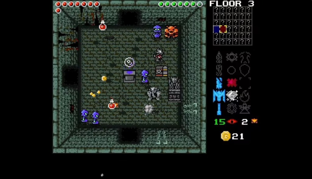 And despite the change in genres, or perhaps because of that, Castle of No Escape 2 is a much better game than the first game in the series. Players wander around a multi-floor Zelda-style dungeon fighting enemies and collecting pickups. The combat is interesting and challenging, thanks in part to a Secret of Mana-esque stamina system that encourages players not to attack wildly but to think through their attacks. And there’s enough variety and interesting stuff strewn about the game’s randomly-generated dungeons to keep things interesting.